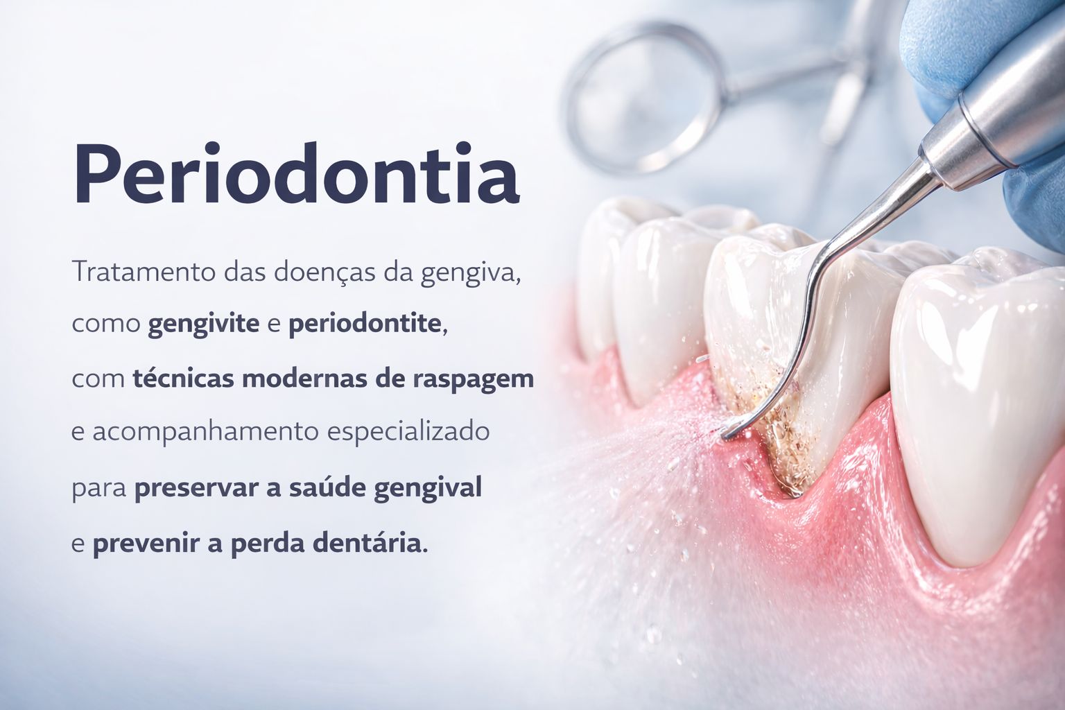 Além das especialidades em Implantodontia e Ortodontia, oferecemos um portfólio completo de serviços odontológicos, possibilitando que nossos pacientes realizem todos os cuidados necessários em um único lugar, com acompanhamento contínuo e especializado.